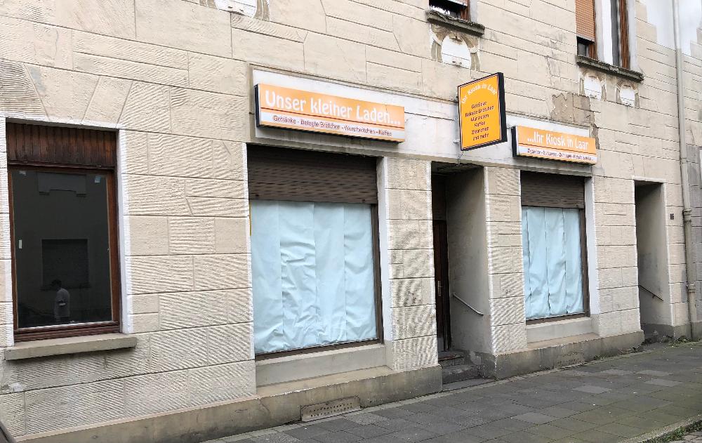 Dieses Ladenlokal befindet sich im Erdgeschoss eines Mehrfamilienhaus in Duisburg-Laar, in unmittelbarer Nähe zum Rhein.